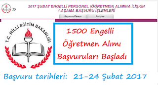 ŞUBAT 2017 ENGELLİ ÖĞRETMEN ALIMI DUYURUSU