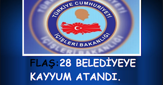 KANUN HÜKMÜNDE KARARNAME GEREĞİ SÖZKONUSU 28 BELEDİYE BAŞKANLIĞINA GÖREVLENDİRİLEN, EKTE İSİMLERİ BULUNAN KİŞİLER BU SABAH SAAT 09:00 İTİBARİYLE GÖREVLERİNE BAŞLAMIŞTIR.