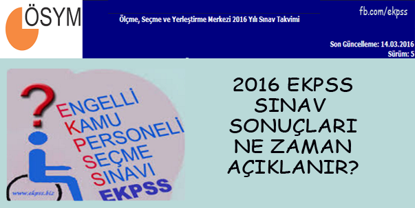EKPSS sınav sonuçları 18 Mayıs 2016 tarihinde ÖSYM sitesinde sonuc.osym.gov.tr adresinde duyurulacaktır.