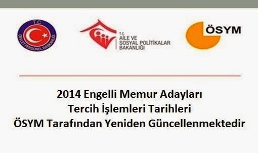 2014 Yılı içerisinde engelli memur alımlarına ilişkin tercih işlemleri tarihleri, teknik nedenlerden ötürü ÖSYM tarafından yeniden güncellenmektedir.