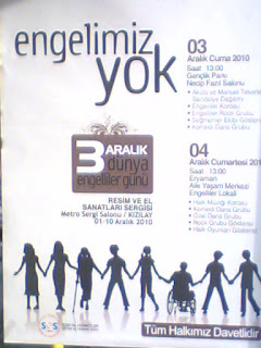 Daha sonra 4 Aralık 2010 Cumartesi günü Ankara-Eryaman Aile Yaşam Merkezi Engelliler Lokalinde yine saat 13:00’da çeşitli etkinlikler yapılacak.