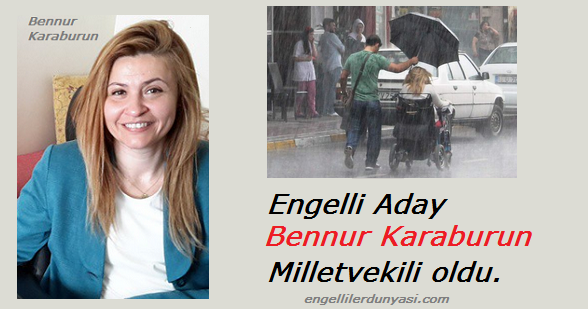 7 Haziran 2015 seçimlerinde Türkiye’nin yağmurda çekilen fotoğrafla tanıdığı Bennur Karaburun, AK Parti’den Bursa milletvekili seçildi. Bu sayede Meclis’teki engelli milletvekili sayısı 3’e yükselmiş oldu.