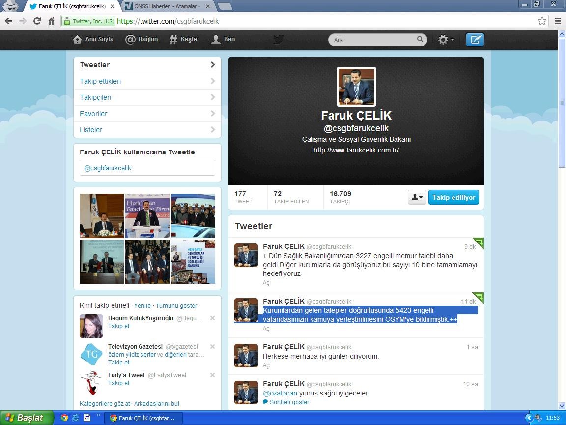 Bakan Faruk Çelik 06.02.2012 tarihli Resmi Twitter Hesabından attığı mesajında ÖMSS atamalarında kadroları 10 bine tamamlayacağız şekilde yeni bir açıklama yaptı. Aşağıda ilgili twitter mesajlarını görebilirsiniz.
