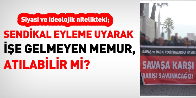 Bazı kamu kurumlarında, Başbakanlığın son Genelgesi doğrultusunda, meslek mensuplarının haklarını korumayan sendikal eylemelere katılan memurlarla ilgili görevden çıkarmasına yönelik soruşturması yürütülüyor.