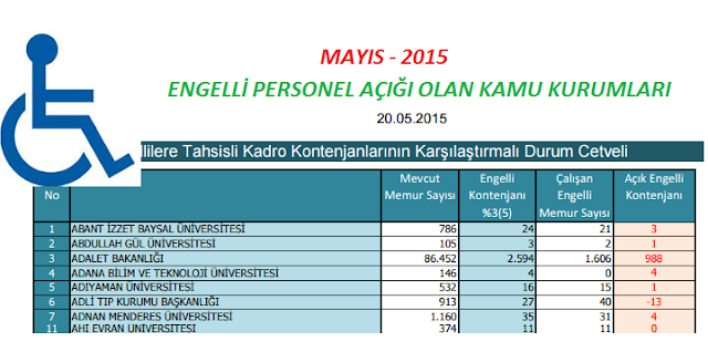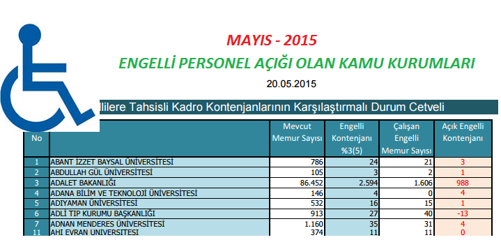 1-Adalet Bakanlığı: 988 Kişilik engelli memur personel açığı