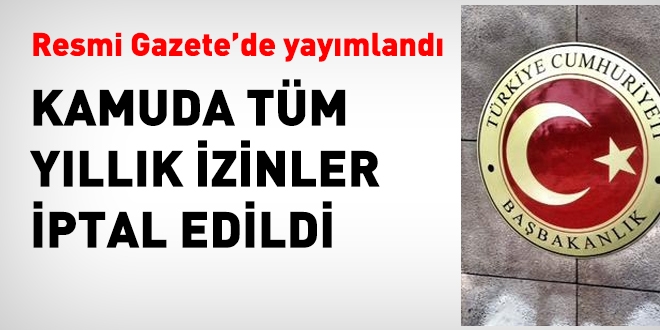Başbakanlık, kamudaki tüm izinleri iptal etti.