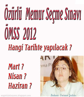 Özürlü memur seçme sınavı ÖMSS’nin 2012 haziran ayında yapılacağına dair Bakan Fatma Şahin geçen gün bir açıklamada bulunmuştu.