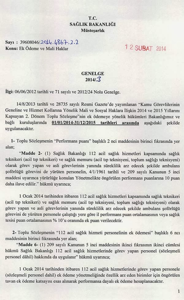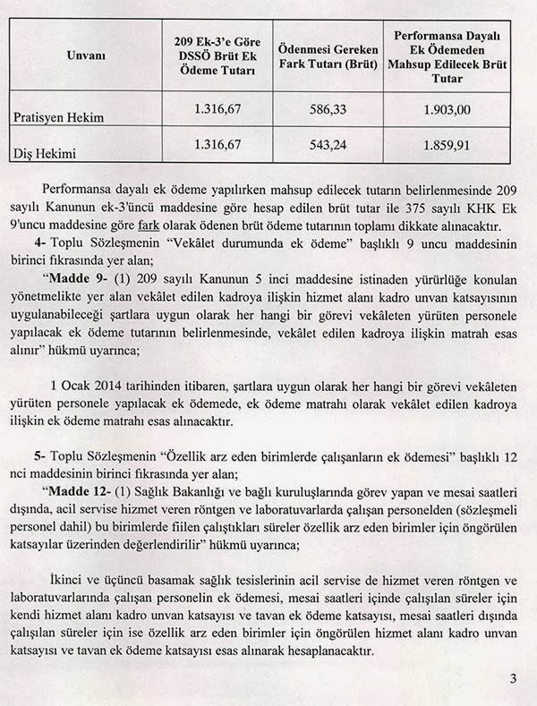 3. Sağlık Bakanlığından Ek Ödeme Genelgesi – 2014